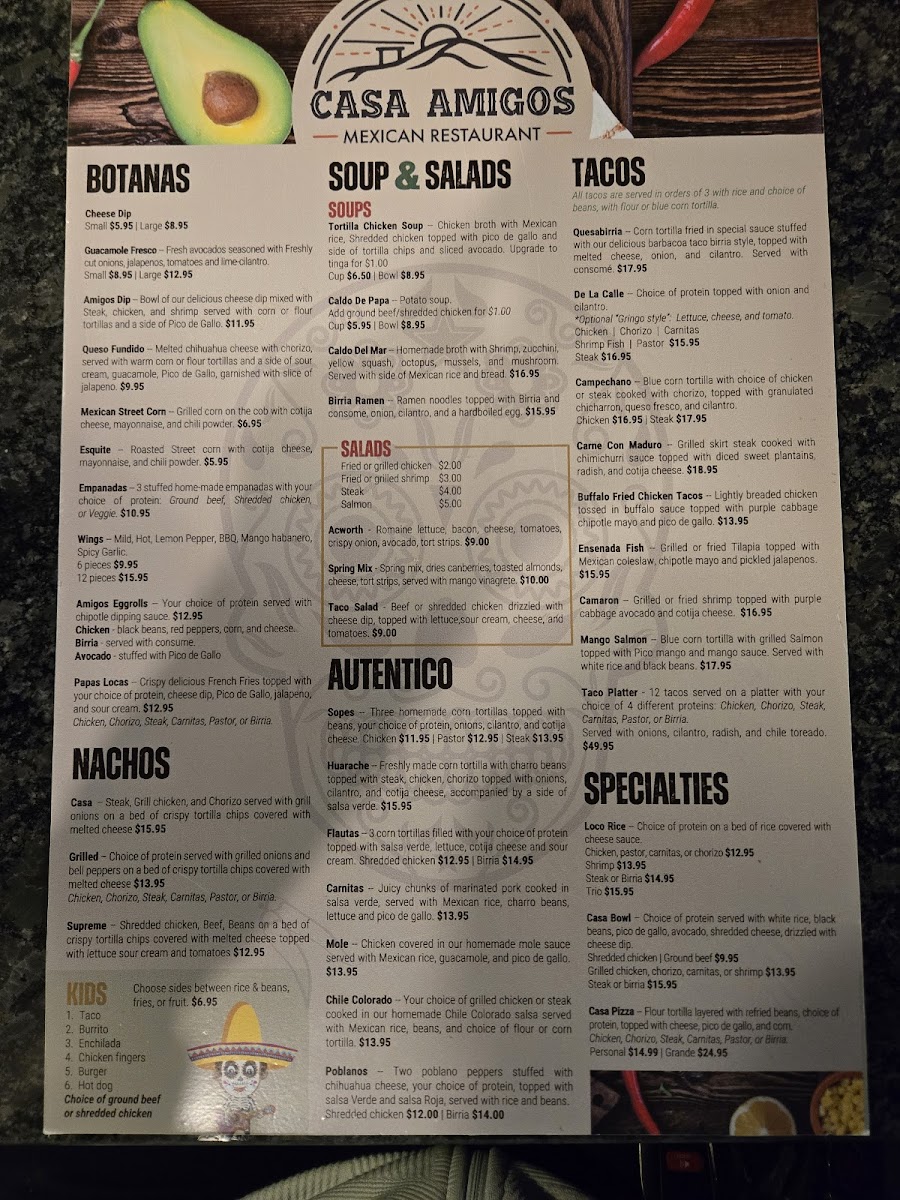 Introducing the Menu at Casa Amigos Restaurante Atl
